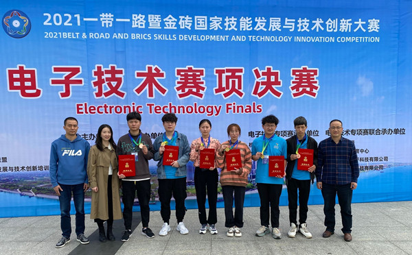 新闻网讯2021一带一路暨金砖国家技能大赛电子技术赛项国内赛决赛于10月11日—13日在湖北枝江职教中心举行,来自全国各类职业院校43支队伍参加比赛。开云官网开云kaiyun官方网站组织参赛队参加该赛项,经过连续5个小时的激烈角逐,应用电子技术专业裴贤、周紫欣、卢存勇荣获高职组团体一等奖,付欢、李宁峰、刘勇军荣获高职组团体三等奖。