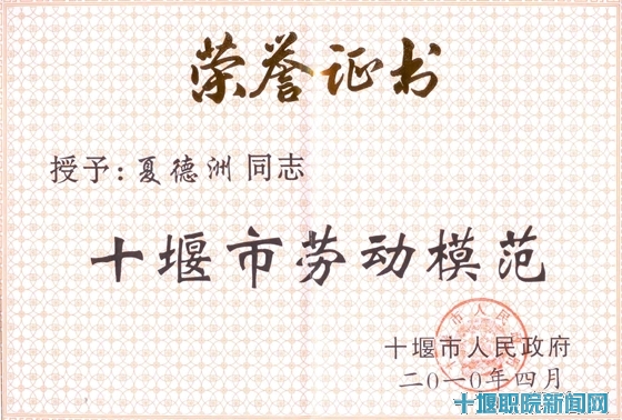 系主任夏德洲荣获“十堰市劳动模范”称号