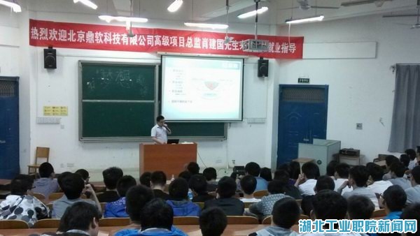 新闻网讯(通讯员 黄召阳42919:00,信息与智能工程系校企共建专业邀请北京鼎软科技有限公司项目总监肖建国,在四号教学楼4201教室为该系12级学生做就业指导讲座。校企共建专业副主任郑健、曹艳及2012级辅导员、全体学生参加了本次讲座。