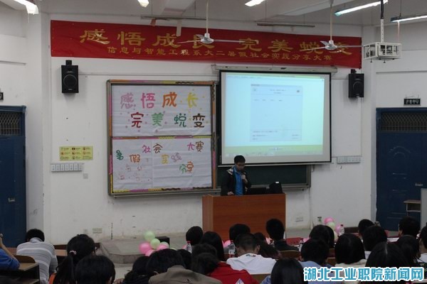 新闻网讯(通讯员 许朴)为了让大二学生更多地了解社会所需,用社会实践积累更丰富的社会阅历,并提高服务社会的技术服务能力,101419:00,信息与智能工程系校企共建专业以“感悟成长,完美蜕变”为主题的暑期社会实践分享大赛在4号教学楼4201教室举行。该系校企共建专业主任陈方亦,副主任曹艳、郑健、肖海霞以及2013级全体师生参加了此次比赛。