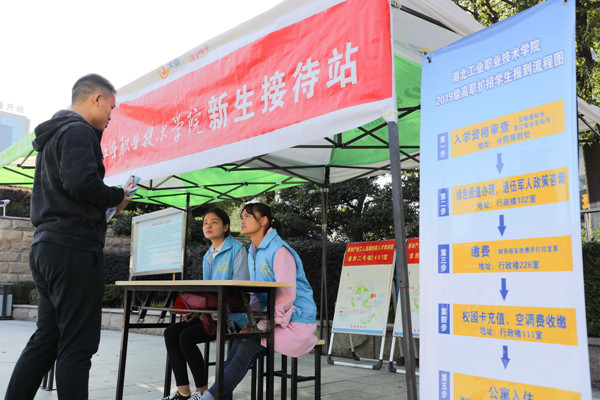 上午10时40分,22岁的新生陈世豪刚从武汉的飞机下来,便急急从机场赶往报到现场。他在武汉某高校读自考,一直希望有机会获得统招大专学历。问及报考原因,他笑着说:“虽然武汉的职业院校也有扩招政策,但没有我青睐的专业。综合学校实力,我报考了湖工职院的电子商务专业,希望毕业后能从事淘宝、自媒体方面的职业。”上午11时,30岁的退役军人王房郧来到报到现场,他说:“高中阶段入伍,尽管错失了最好的读书时光,但在部队锻炼了五年,学到了很多。这次高职扩招,国家对我们退役军人免收学费,我会好好珍惜此次读书机会。”