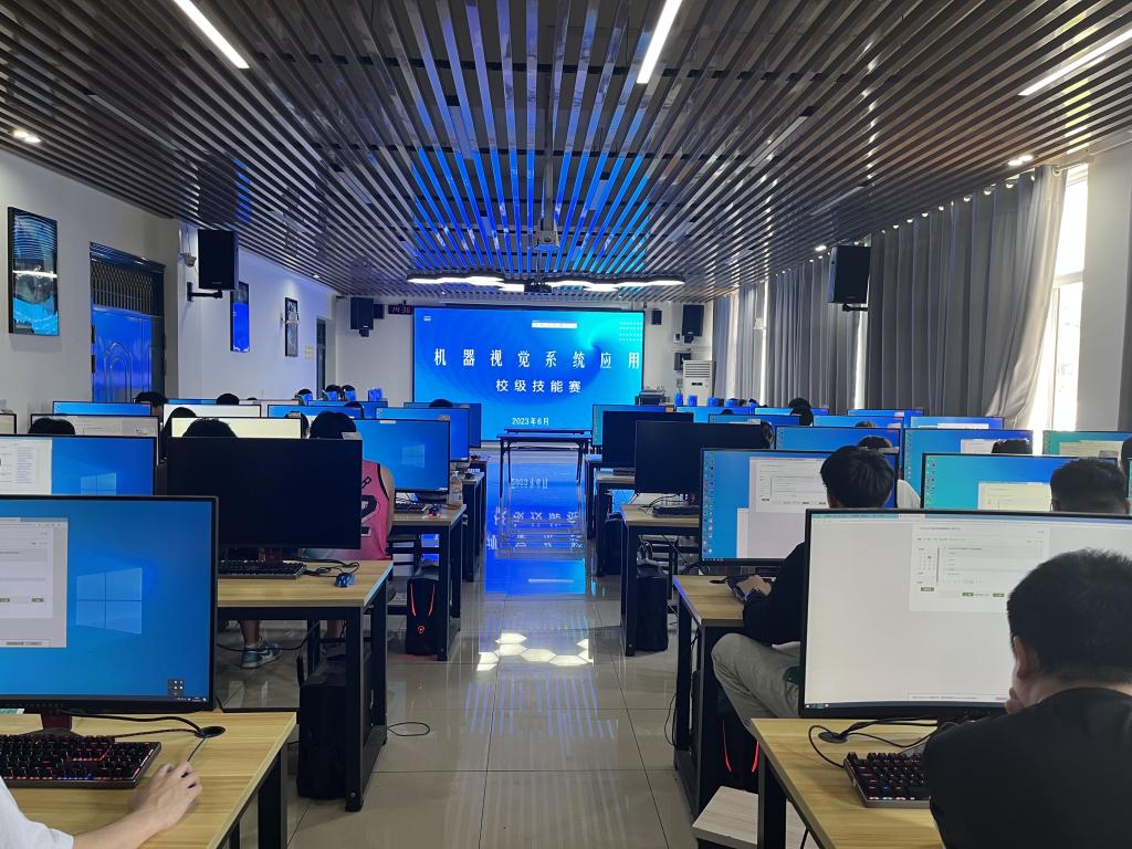 新闻网讯(通讯员 贺琼 王俊亚)为进一步提升学生专业技能,巩固实训教学成果,促进专业实践教学与人才培养模式改革,开云kaiyun官方网站于6月25日下午举行了“机器视觉系统应用”“集成电路开发与应用”技能竞赛。其中“机器视觉系统应用”赛项参赛选手主要来自人工智能技术应用、电气自动化技术21级在校生,前期经过培训和选拔,最终遴选28组共56人参加比赛,参赛选手通过协作完成比赛任务,竞赛内容紧密贴合“可编程控制器系统应用编程”1+X证书实操考核内容以及省赛“机器视觉系统应用”赛项任务及要求。