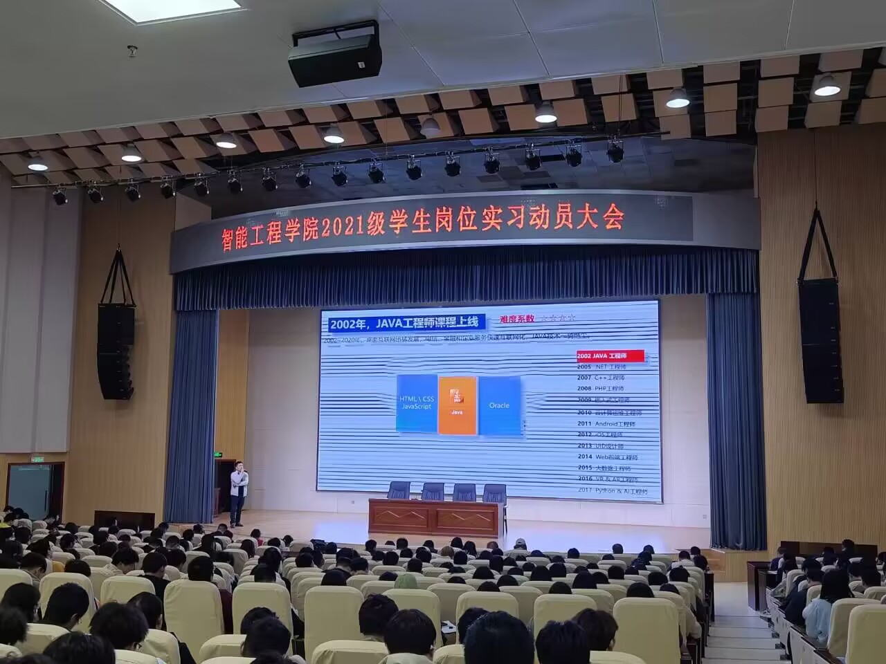 开云kaiyun官方网站党总支书记王蓉对此次实习做了动员讲话,明确了岗位实习的任务、目的和意义,强调岗位实习的注意事项,提醒学生注意自身安全、岗位安全、防诈骗、防网络犯罪、防溺水等,并要求全体实习学生充分利用好这次实习机会,在实践中学习成长,严格按照岗位实习要求,高标准、高质量地完成实习任务。副院长王家旭宣布了2021级学生岗位实习安排,从岗位实习任务、实习纪律、实习考核等方面进行了安排和要求。来自智能科技、电子等企业的招聘人员现场进行了宣讲,将岗位实习的具体要求、待遇和注意事项进行了详细的介绍和说明。