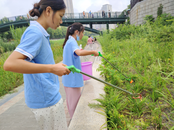 河道垃圾清理,守护一汪碧水。实践团成员兵分两路开展活动,一队成员协力清理河道两岸的垃圾,另一队成员向沿岸居民和行人发放调查问卷、守水护水节水宣传册,了解居民对生态环境保护的看法,讲解水资源保护的重要意义及环保节能办法。