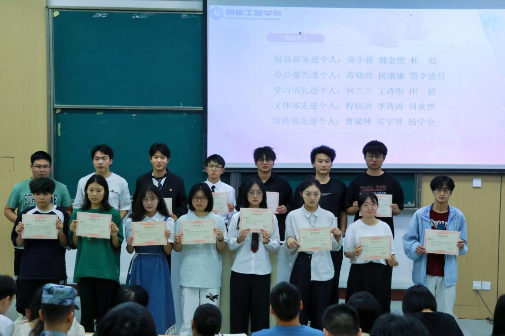 在工作回顾环节,2023级学生会主席团代表蹇亿、书记团代表王维先后进行述职报告。他们全面梳理过去一年的工作成果,从丰富多样的校园活动组织、细致入微的学生服务工作,到规范高效的日常管理、富有成效的团队建设,每一项成绩都凝聚着过往成员的辛勤付出与不懈努力,也为新一届学生会成员树立了奋进目标。