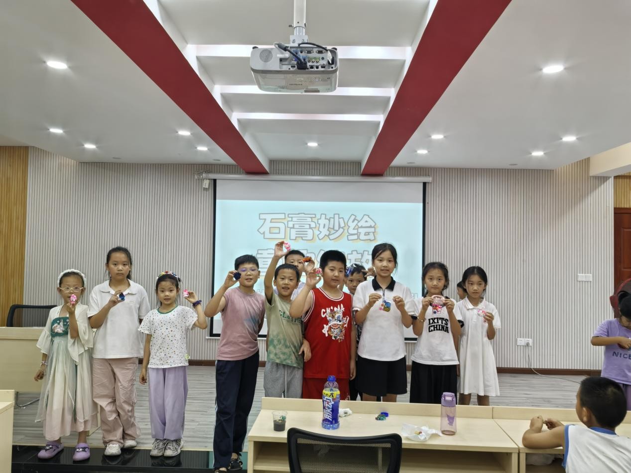 活动接近尾声,原本素净的石膏娃娃被赋予了鲜活的色彩:戴着粉色蝴蝶结的兔子、身披彩虹披风的超人、缀满星星的太空人……孩子们举着自己的作品互相展示,脸上洋溢着成就感。志愿者杨韵涵表示:“希望通过这样的活动,给社区孩子们带去快乐,也让志愿服务‘电亮’更多角落。”